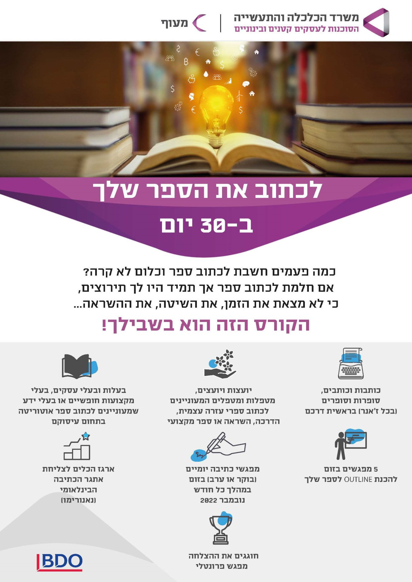 לכתוב את הספר שלך ב-30 יום - (ZOOM) - קורס בוקר ₪960.00