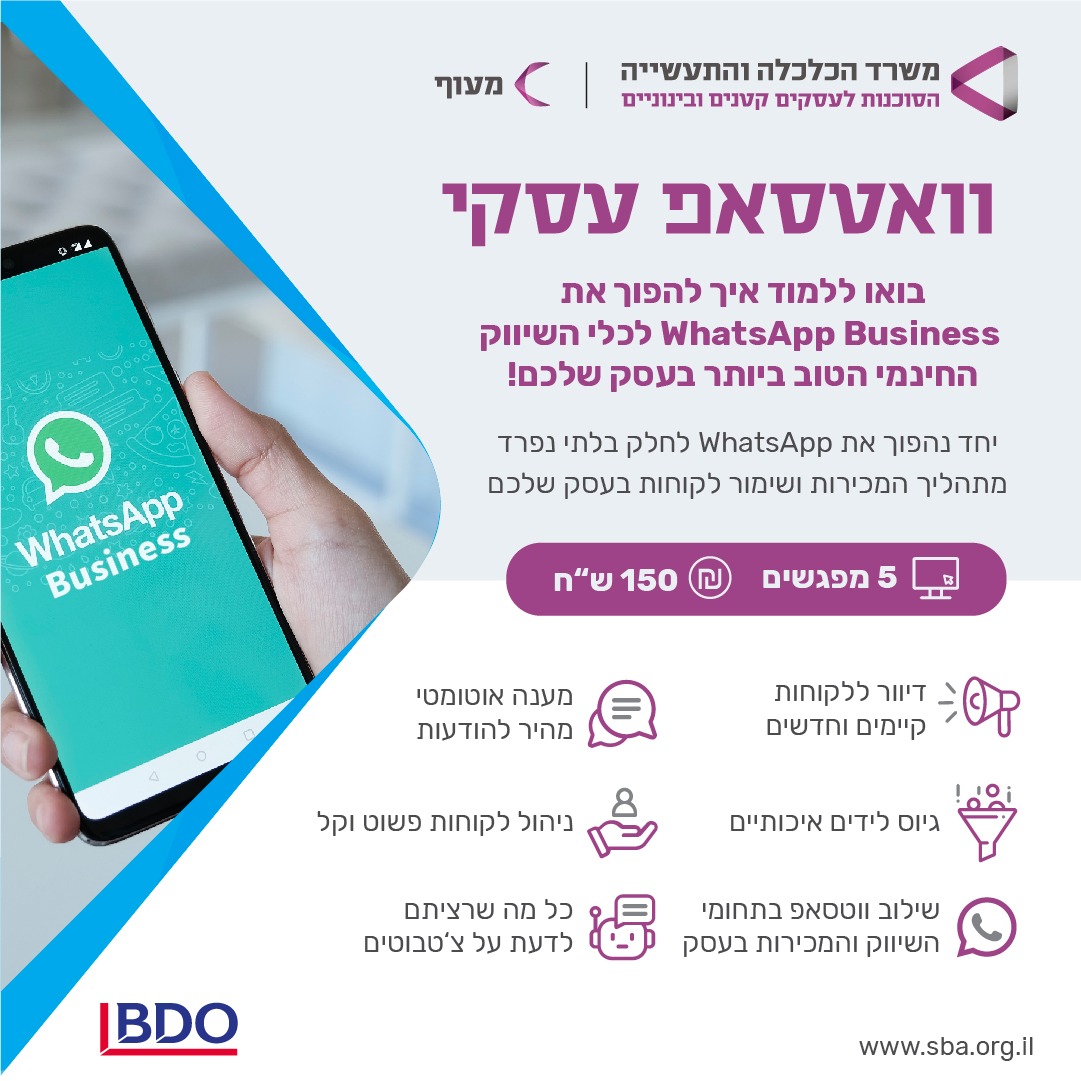 קורס וואטסאפ עסקי - זום (ערב)